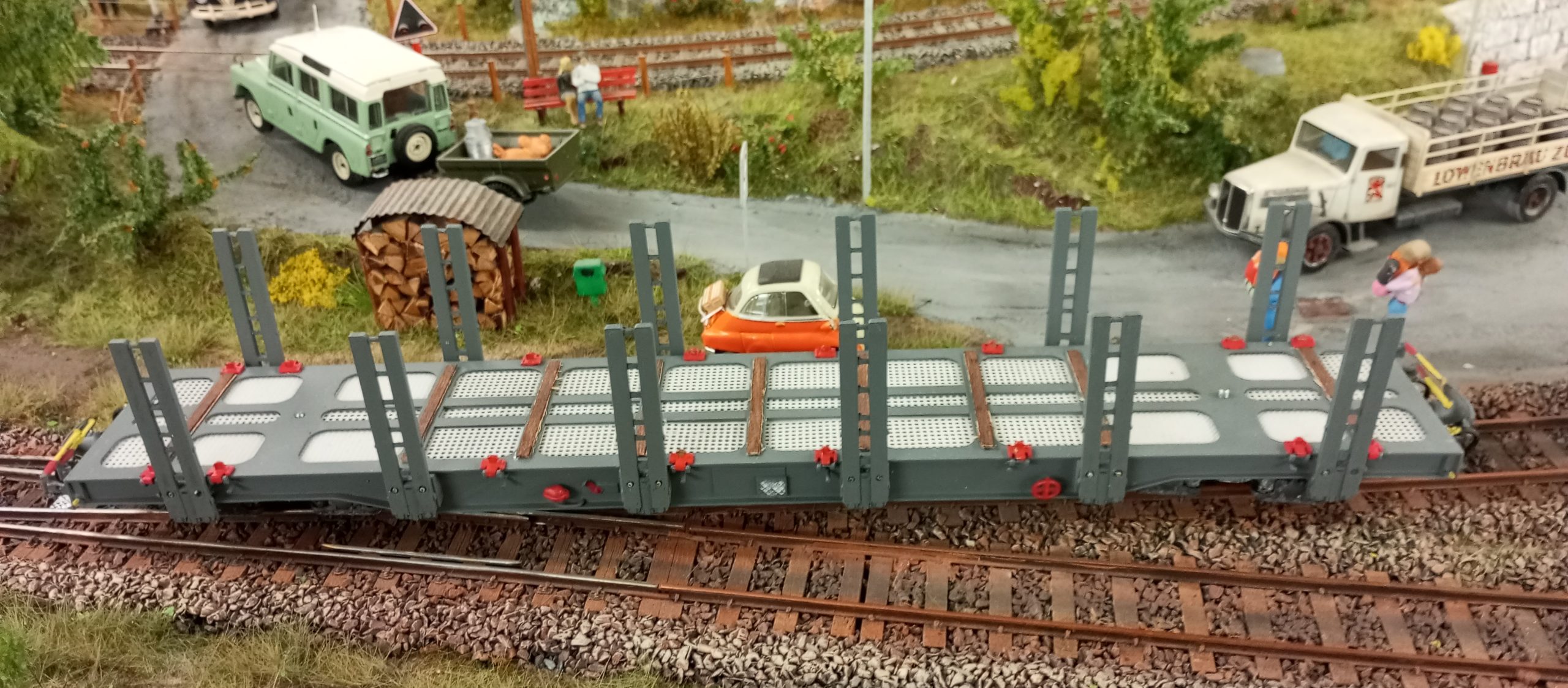 Ich werde den 4 achsigen Langholzwagen Sgp in einer robusten Messing Ausführung auflegen. Nebst Holz sollen auch Container verladen werden können. Der Wagen ist für den Betrieb auf Fama sowie Ferro Suisse Gleisen ausgelegt. Im Moment wird ein Prototyp erstellt und getestet. Die Kosten stehen noch nicht fest.